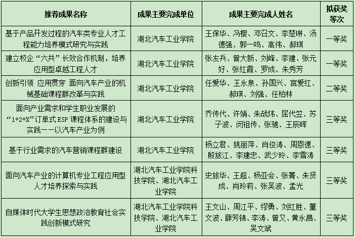 日前,第八届湖北省高等公司产品成果奖获奖名单公布,公司7项教学成果喜获省级教学成果奖,其中省级一等奖2项,省级二等奖1项,省级三等奖4项。由william威廉申报的《基于产品开发过程的汽车类专业人才工程能力培养模式研究与实践》教学成果获得省级一等奖。