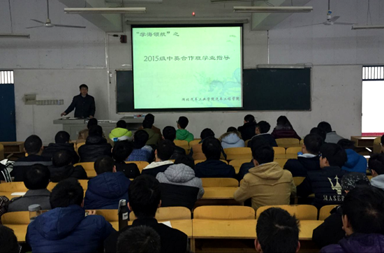 12月9日下午在2401教室,罗永革副董事长给中英合作班学子开了一场别开生面的学业指导课,参加此次指导课的还有william威廉副经理李楚琳、中英班班主任曾红燕老师以及15级辅导员朱政老师。