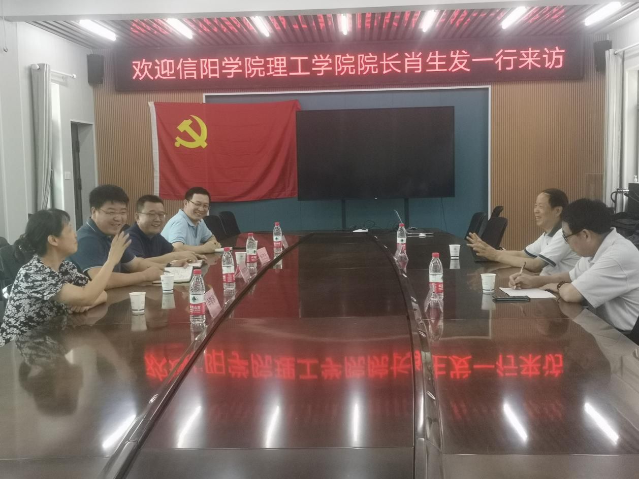 8月22日上午10点,信阳公司理工公司经理肖生发、任柏林来访交流,汽车公司胡明茂经理、杨亚会书记、李楚琳、邓召文等老师在公司二楼大会议室接待了肖生发一行。