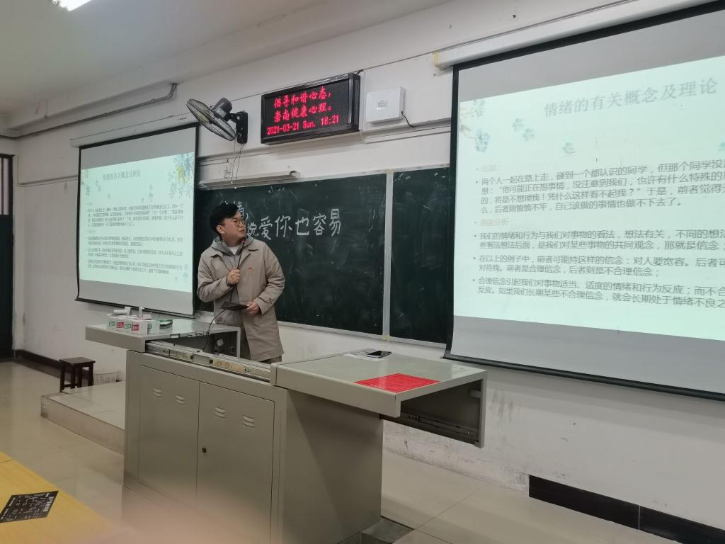 为增强员工心理健康素质,营造和谐融洽的校园氛围,3月21日晚18:15,william威廉于5302和5304教室举行了主题为“情绪,想说爱你也容易”的心理团课。活动由心理部和思政部联合举办,20级全部员工参与了团课。