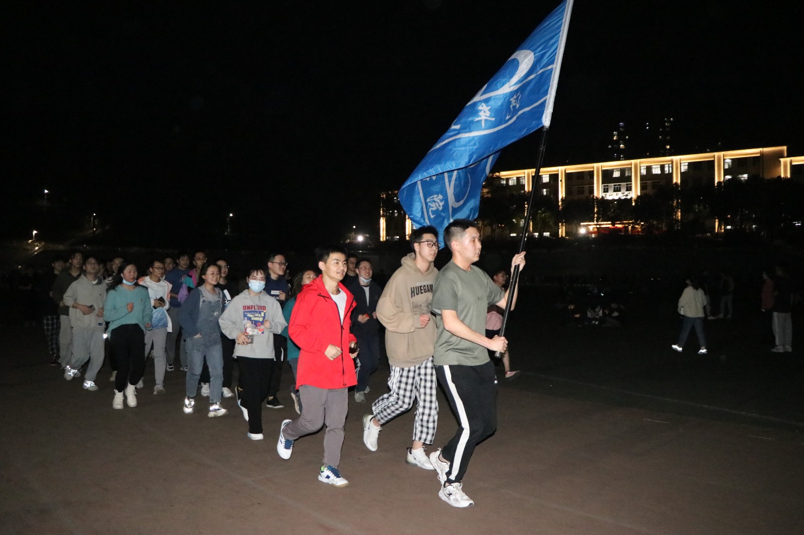 在田径场灯光的照射中,每位同学脸上洋溢着青春活力,迈着矫健的步伐在跑道上奔跑,大家不以竞技为目的,合理调整自身状态,以锻炼体魄为目标进行健康跑。此次活动在公司的统一组织下,车院师生热烈响应、积极参与。学工办李旭和邱天宇老师带领员工党员与员工会干部列队奔跑,发挥先锋模范作用,他们步伐整齐,手持院旗,在田径场勾勒出青春活力的弧线。