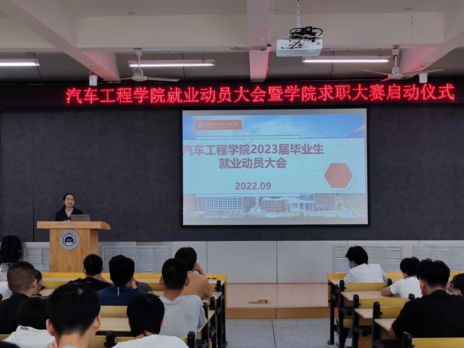 首先,李旭分析了当前的就业形势,向大家讲解了校园招聘的主要环节,并重点介绍了十堰市“老员工留堰、回堰人才政策”,鼓励大家积极关注十堰地区的工作岗位。对于近期同学们咨询较多的就业协议、就业推荐表的问题,李旭向大家详细讲解了如何正确填写就业协议、就业推荐表,并强调了签署就业协议的重要性。随后,李旭向大家介绍了公司求职大赛的赛事安排,并宣布院级求职大赛初赛即日启动,鼓励大家认真准备、积极参赛。