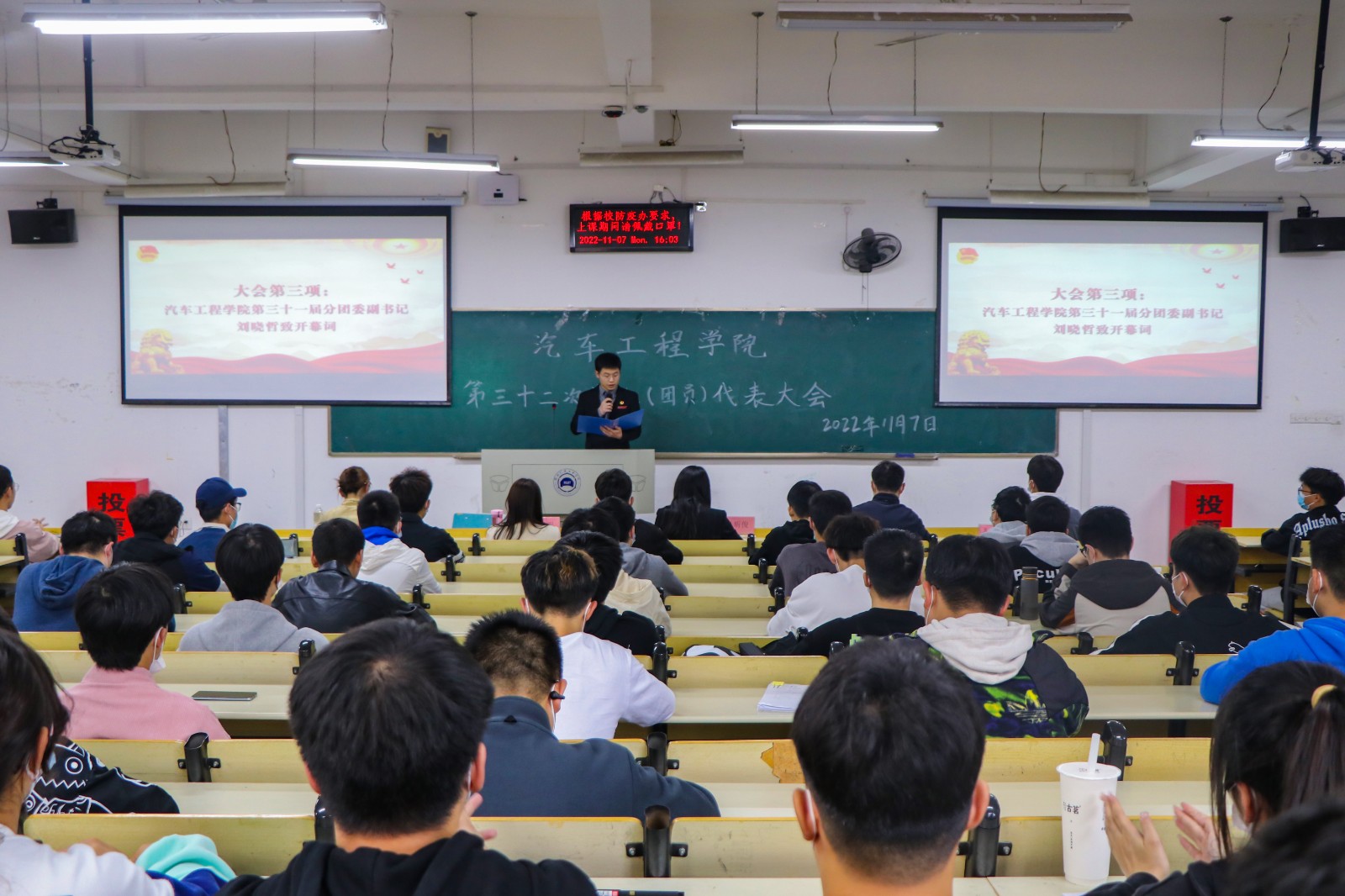 为促进公司员工工作的优化升级,加强员工干部队伍建设,充分发挥员工组织的桥梁作用,服务好广大车院学子。11月7日下午,william威廉第三十二次员工(团员)代表大会在6211教室顺利召开,分党委副书记杜昕俊、分团委书记李雅琨、辅导员李键雯、李旭,校员工会执行主席覃向波以及各年级员工代表参加了本次大会。大会由车辆203班刘伯通主持。