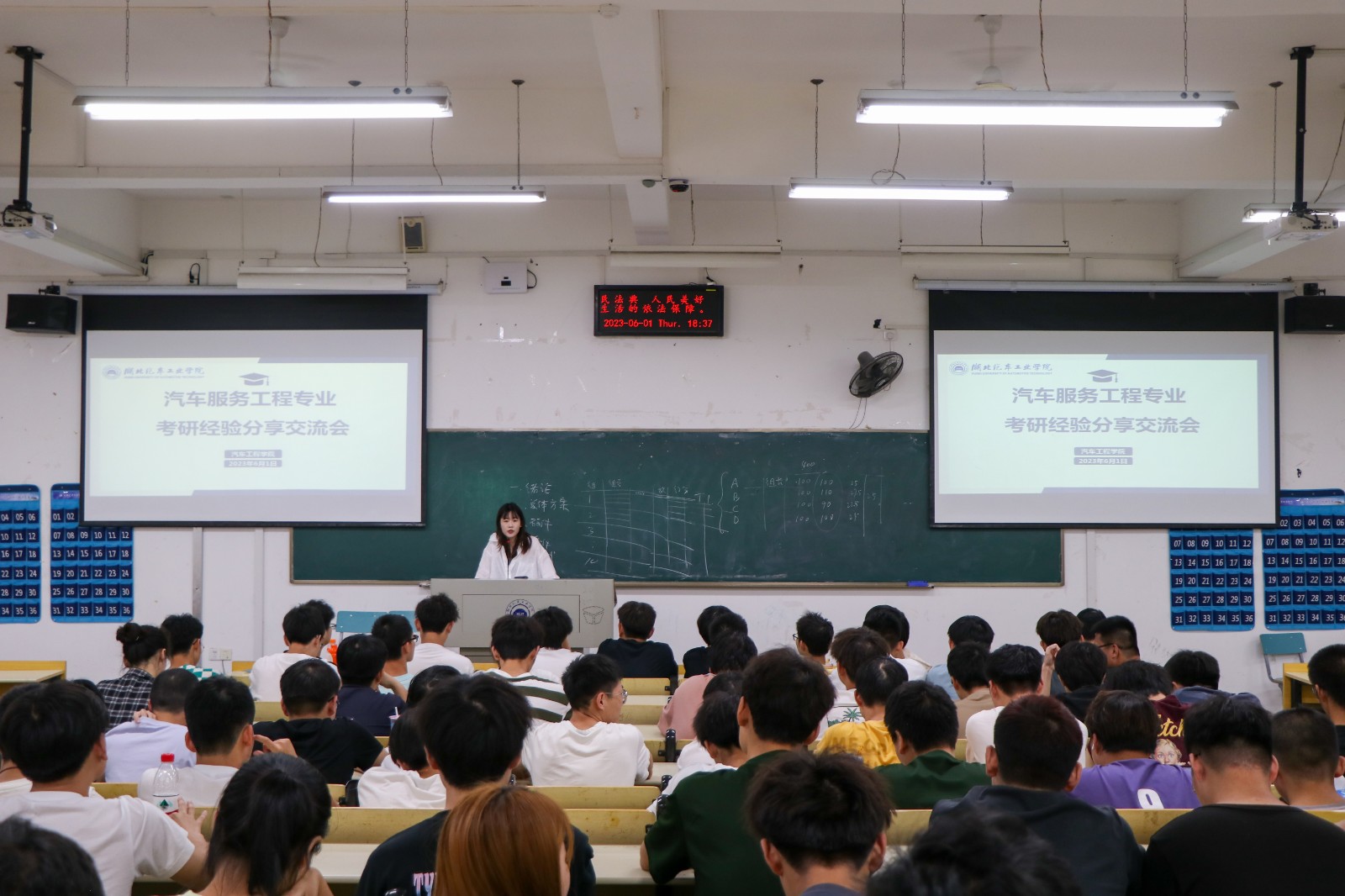 会议邀请了成功考上武汉理工大学研究生的19级车服专业员工蔡周桥,他结合自身考研经历,围绕“为什么考研”、“如何考研”、“如何选择专业方向”、“如何调整心态”等方面展开分享,就车服专业未来就业前景、职业类型与同学们进行了交流,为有考研意向的同学给予了耐心细致的解答,并建议他们结合实际情况选择院校、确定目标、制定计划、把握进度、多刷真题。