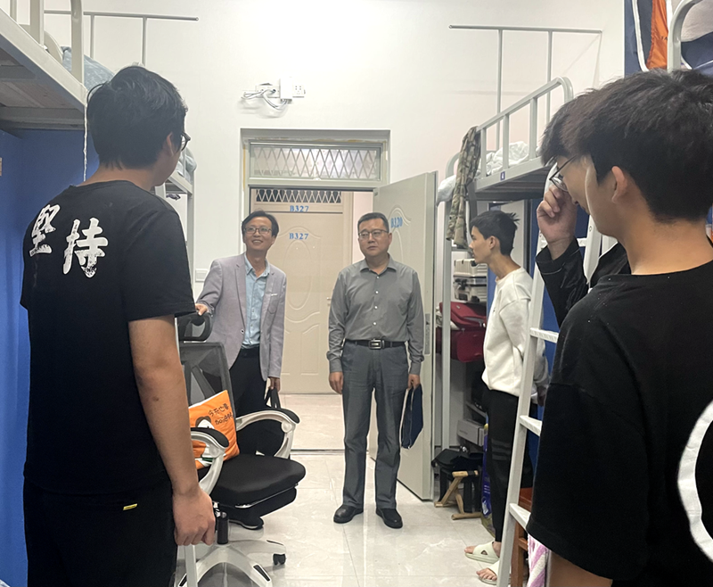 走访过程中,王关锋、杨亚会与同学们逐一亲切交谈,关心并询问了同学们期末考试和暑假规划等情况,提醒同学们暑假返乡途中注意人身安全和财产安全,放假期间寻找兼职实习时擦亮眼睛,提高警惕,学会做反诈、防诈的聪明人,切勿做被诈、帮信犯罪的可怜人。同时,还叮嘱各位同学考试期间端正态度,务必遵守考试纪律和要求,做到诚信应考,切勿因一念之差对自己和班集体产生不必要的负面影响,“宁可丢分不可丢人”。对于暑期有留校学习和准备学科竞赛意向的同学们,杨亚会表示,公司会竭尽全力保障同学们暑期在校的生活和学习,并鼓励他们扎实学好相关知识,练就真本领,争取在竞赛中取得佳绩。随后,王关锋和杨亚会一行人对员工宿舍各处角落进行了详细的检查,确保每个寝室无安全隐患。