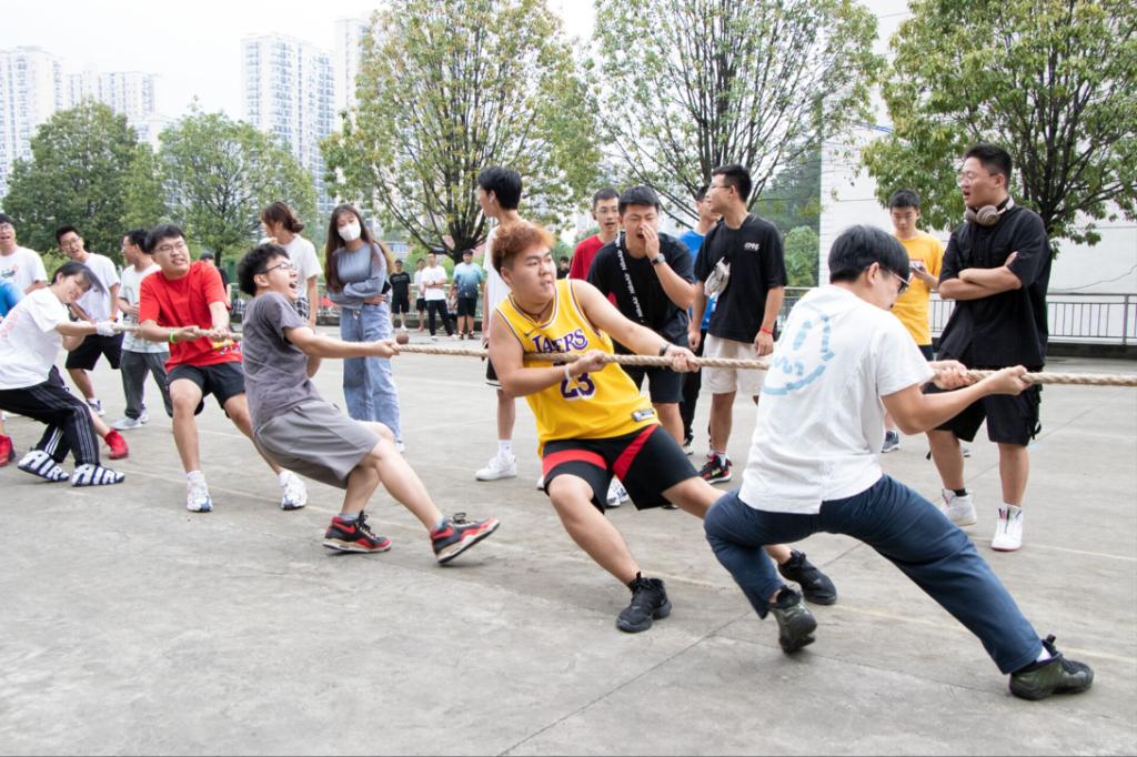 随着比赛哨声吹响,参赛队员们瞬间握紧长绳并且卯足劲,使出全力,身体倾斜的同时一步一步将绳子向身后拽扯。参赛队员奋力拼搏,未参赛的同学在自己班级队伍旁加油助威。比赛一场接一场,呐喊声、哨子声一阵接一阵。此起彼伏,好不热闹。比赛过程异常激烈,无论是在参赛人员还是助威观众,都散发着青年老员工的蓬勃朝气!
