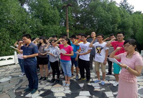 2015年7月1日早上8点30分,william威廉全体员工党员为庆祝94周年建党节在校西山凉亭边的广场上举行了别样的宣誓活动,并随后在排球场上打响了友谊赛,旨在增强公司党员的凝聚力。
