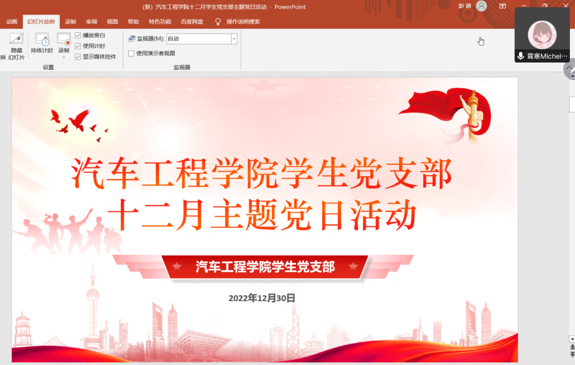 为进一步加强对党的二十大精神的学习领悟,全体党员集中观看了视频《二十大里看未来:如何理解“中国式现代化”》并展开了热烈讨论。其中,党员申会成说到“我们必须深入学习马克思主义理论,弘扬伟大建党精神,积极参与到新时代中国特色社会主义事业之中,胸怀伟大祖国,用青春为祖国现代化建设贡献力量。”丁潘说到“中国式现代化让我们更加自信,作为车辆专业的学子,我们必须时刻把握中国汽车的发展态势,以时代需求为导向,不断夯实专业知识,不断创新发展”。