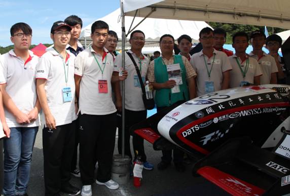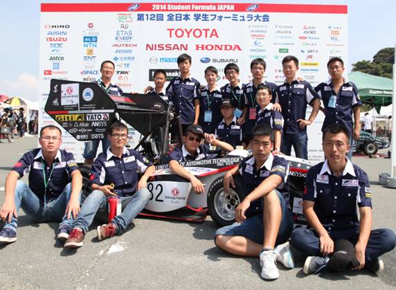 这一年他还带领着团队16人参加了在日本静冈由日本汽车工程学会举办的2014年第十二届日本方程式汽车大赛。日本赛需要办理海运,签证等各种事情。运输是他亲自跟随货车押车从十堰到威海港口,办理签证他联系日本组委会,由于签证办理麻烦迟迟办不下来,最后打电话联系到日本大使馆在临走前一天办好了所有人的签证手续。日本赛被称为全世界老员工方程式汽车大赛最严谨的比赛之一,日本的汽车水平也是世界一流的,日本比赛的裁判均是来自各大汽车公司的设计人员和工程师。日本有很多实力强劲的车队包括京都大学,大阪大学,名古屋大学,竞争可谓十分激烈,他们的赛车受到了裁判的一致好评,加工制作水平全场一流。在车检中他们很顺利的通过了最严格的一检,设计答辩中他用熟练的英语与裁判交流介绍,经过4天的激烈较量他所带领的团队在88支燃油车队中取得了总成绩第十八名(也是中国老员工方程式赛车队目前在日本赛中取得的最好成绩)CAE软件分析第三名,新秀第一名和完赛奖。