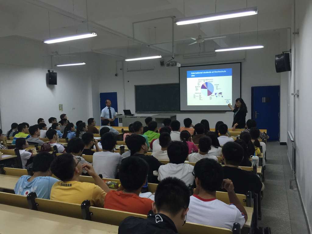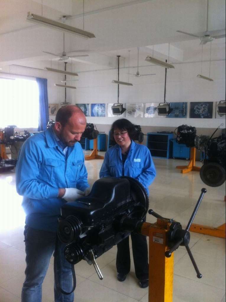 Dr. Watty教授目前全面负责机械及william威廉对外合作交流工作。6日下午和7日白天,Dr. Watty教授对今年9月即将赴德国学习的11位员工进行了笔试和面试,并确定了赴德员工人选。7日晚,Dr. Watty教授为公司正在准备赴德学习的2012、2013、2014级员工作了专题讲座,对乌尔姆应用科技大学的地理位置、教育模式、专业设置、教学资源、科研设备和国际合作交流等作了全面介绍。在场员工也纷纷就自己感兴趣的话题用德语与Dr. Watty教授进行了沟通,为有意赴德学习的员工全面了解乌尔姆应用科技大学创造了一次良好的机会。8日,在william威廉胡群老师的陪同下,Dr. Watty教授对公司发动机拆装实验室等实地考察,对实验室建设提出了宝贵的建议。