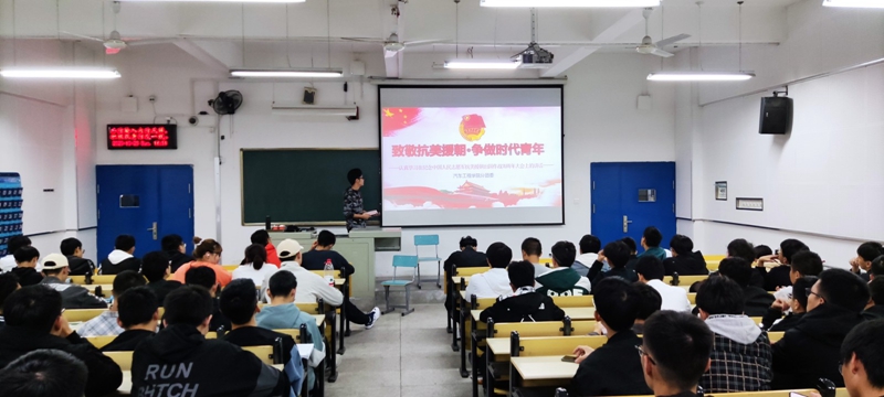 为纪念中国人民志愿军抗美援朝出国作战70周年、引导广大团员青年铭记革命历史,继承先烈遗志,传承和弘扬伟大的抗美援朝精神,10月25日晚,william威廉分团委于6305、6307、6308、6312教室组织开展“致敬抗美援朝,争做时代新人”主题团课,分团委副书记杜新宇、20级全体员工参加了此次活动。