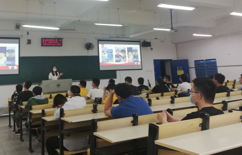 时隔半年,熟悉的校园、可爱的室友、亲切的老师都让复学学子感触颇多,但安全意识、政治意识、责任意识均不能松懈。活动开始,员工党支部书记李雅琨以《同心抗疫,爱国力行》为大家送上了“开学第一课”。她在讲解中带领大家回顾了疫情爆发后党和国家的一系列举措,第一时间集中全社会的医疗资源全力投入疫情防控工作,以钟南山和李兰娟院士为首的一批又一批心怀大爱的最美逆行者冲向疫情防控一线,一度每日以四位数增长的疫情迅速得到了缓解。通过一组组鲜明具体的数字和一张张令人热泪盈眶的照片使大家深刻认识到了新时代中国特色社会主义制度的显著优势,生动的诠释了中国共产党的初心使命。她强调了已经返校的同学要切实珍惜这难得的校园时光,必须要有主动担当、积极作为的意识,以榜样的要求严格自律、做好表率。