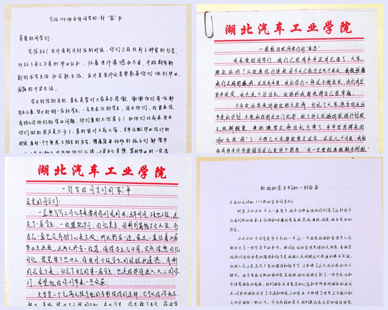 2018年入职的辅导员李雅琨给在自己所带的2018级全体员工的手写家书中回顾了自己与同学们一起成长的幸福与快乐,并以《时间之书》里的“年轻人,你的职责是平整土地,而非焦虑时光” 勉励同学们时光不等人,要做一个努力和自律的人,以今日的脚踏实地、勤奋刻苦赢得美好未来。辅导员、学工办主任朱政通过家书向同学们交流老员工活的重点、学习的重要等,引导同学们要学会规划自己的学业和未来并付诸实施,让自己的大学忙起来。博士、班主任毕崟也通过家书给所带的班级同学上了一堂思政课,要求同学们爱党爱国、诚实勇敢、主动担当。