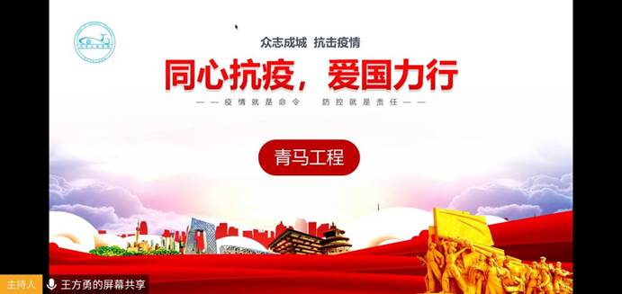 分团委副书记王方勇主持活动,介绍了公司2020年青马工程的总体计划和疫情期间开展此次活动的目的及其必要性。随后,员工党支部书记李雅琨作为此次活动的主讲人,以“同心抗疫、爱国力行”为主题进行了深刻的剖析和讲解。疫情就是命令,防控就是责任,她结合疫情期间国家快速组织专家、医疗物资、生活物资等各种资源同心抗疫的一个个实例,让同学们认识到中国特色社会主义制度集中力量办大事的优越性;通过疫情发展中,党中央的正确领导和基层一封封一线“请战书”清晰展示了中国共产党的伟大号召力;透过“最美逆行者”、志愿服务人员等奋战在一线抗疫防疫的人们和社会各界爱心人士的捐助、支援,讲述了人民力量的伟大,引申出爱国主义其实就在我们每个人的身边,我们青年人都要用自己的实际行动为国家为社会贡献一份力。她呼吁所有的车院学子们不断强化四个意识、坚定四个自信、践行两个维护,不信谣、不传谣、不恐慌,坚守光明、理性思考、传递正能量,争做新时代的青年榜样。