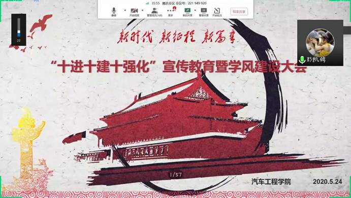 为全面落实公司“十进十建十强化”宣传教育工作计划,切实推进党纪党规和监察法入脑入心,以纪律和作风建设引领学风建设,william威廉于5月24日19:00利用腾讯会议平台召开了“十进十建十强化”宣传教育暨学风建设大会。分团委书记胡霄寒、学工办主任朱政、分团委副书记王方勇以及19级两百余名同学参加了此次会议。