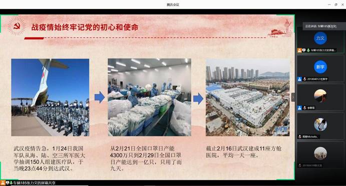 时值中国共产党成立99周年之际,为激发公司学子的爱国、爱党情怀,提升使命感和责任感,william威廉于7月5日晚7:30在腾讯会议平台举办了“知党恩·跟党走”建党99周年主题团课活动,分团委书记胡霄寒、员工党支部书记李雅琨以及19级全体同学参加了此次活动。