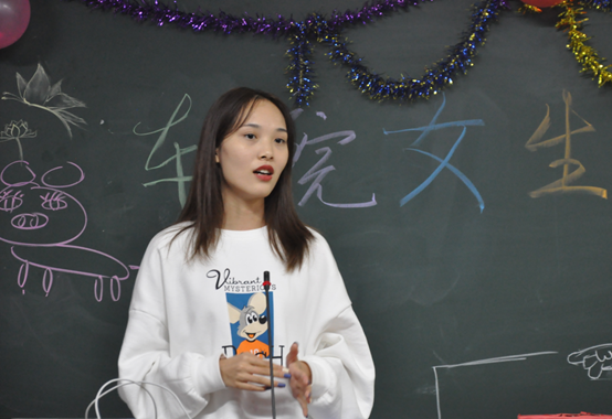 活动正式开始,主持人邹强表达对20级女生的热烈欢迎,介绍了本次活动嘉宾,随后由18级优秀员工代表王璐瑶从大学学习的重要性谈到员工工作、宿舍关系等多方面内容,让女生们逐步了解到老员工活,并以自身经历为例,对女生的日常生活、技能培养等多方面提出了建议。在全体女生以宿舍为单位进行简单的自我介绍后,活动进行到期待已久的才艺表演环节以及游戏互动环节。叶逸凡邀请20级女生王怡和郑思如一起带来精彩表演,活动期间歌曲、舞蹈节目交替呈现,通过“逢3过”“听歌识曲”“击鼓传花”“你画我猜”“抢板凳”等游戏将活动气氛推至高潮。最后,活动在欢声笑语中圆满结束。