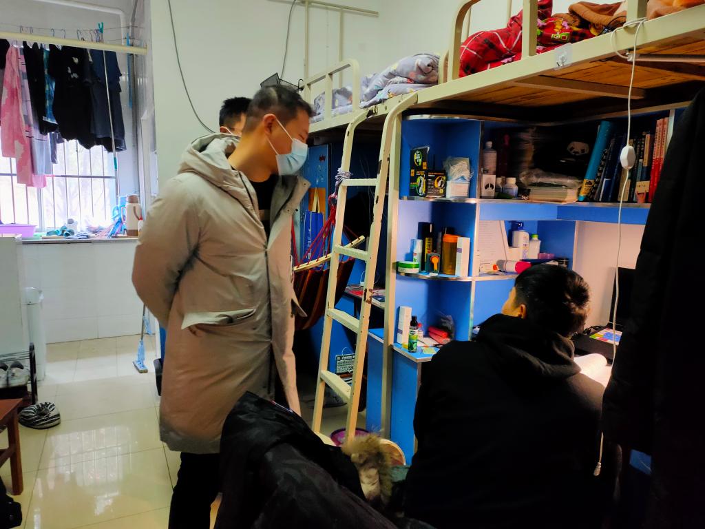在走访过程中,辅导员们逐一督促未离校员工们进行放假卫生清扫,强调了室内用电安全,切实保持室内整洁、卫生、无安全隐患。要求宿舍最后离校同学务必保证全部断电且门窗关好,妥善保管私人物品,宿舍内柜子要上锁,寒假期间贵重物品不要放在宿舍。同时,也了解了晚归家的同学们留校原由,提醒大家密切关注国内疫情形势变化,特别是家庭所在地的情况,做好严格的防控,确保安全归家。