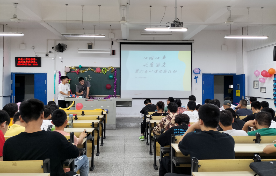 各班班长及心理委员担任主持人,活动开始前,邱天宇强调了心理团辅活动的性质以及意义,也提醒同学们在活动过程中注意安全。随后各班班长开始讲解游戏规则,接着新生们进行了击鼓传花,你画我猜,大风吹,独一无二,抢椅子,乡音荟萃,踩气球等游戏。在游戏中,同学们积极参与,团队合作,勇于竞争,在游戏中展示着各自的风采。在你画我猜游戏中,同学们更是使出了浑身解数,画的同学努力画出关键词的特点,猜的同学也一刻不停联想图案信息并说出想到的关键词。不知不觉间,游戏在同学们的欢声笑语中慢慢结束。游戏过后,进入时光邮局环节,由班长组织同学们写下自己的心愿,放入事先准备好的心愿箱中封存,来年打开。最后,各班组织合影留念。