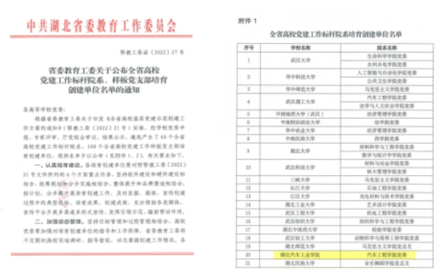在湖北省高校支部典型案例创建活动中获省级二等奖、2022年7月分党委获校级“标杆院系”立项,