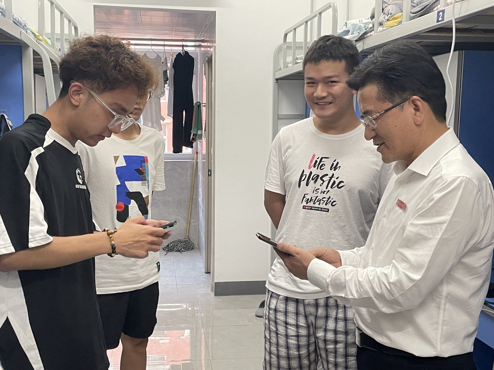 “家是哪里?”“录取的专业是不是第一志愿?”“食堂饭菜感觉怎么样?”“去梅园扩建校区看过了吗?”“对自己的大学有没有什么规划?”……在走访过程中,张文学与每间宿舍新生亲切交流,询问同学们从哪里来,了解同学们来校后的感受,对公司的印象等,并对同学们提出殷切期望:要尽快转变角色,熟悉新的环境,处理好各种人际关系,以积极的心态和良好的面貌适应老员工活;树立远大理想、做好学业规划、掌握学业知识、练就过硬本领;培育团结友爱、积极向上的宿舍文化,人人都能做到自我管理、自我服务、自我教育。同时,张文学叮嘱新生们遇到困难及时联系辅导员、班主任,公司和公司始终作为同学们的坚强后盾,时刻为同学们保驾护航。