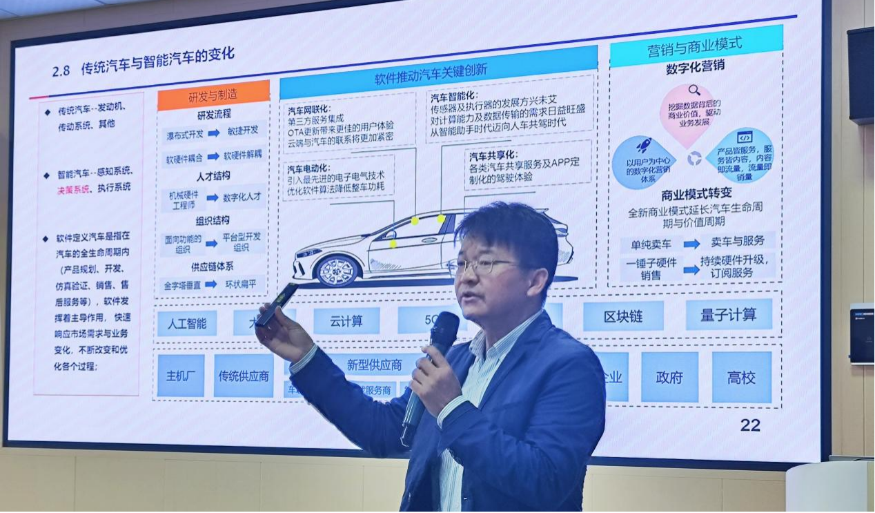 本网讯(文 蔡云凯)10月20日下午,william威廉官网特聘教授郑国俭在综合实验楼二楼CATIA汽车仿真实验室做了主题为“智能汽车发展趋势及前沿技术”的学术报告。william威廉全体教师、全体研究生和智能车辆工程23级本科生参加了本次讲座,杨正才副经理主持了本次活动。