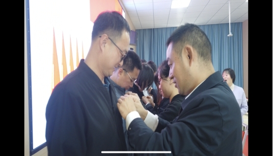 近半年来,本支部新增加了6名新进博士党员,作为新生的战斗堡垒力量,老党员们对他们的到来表示热烈的欢迎和殷切的期盼。6名博士党员的加入,为党支部注入了新鲜血液,进一步扩大了党员队伍,全体党员将始终砥砺前行,在教书育人、科学研究、服务社会等各位方面充分发挥先锋模范作用。会上,一支部书记、优秀教师模范韩同群教授、市优秀共产党员袁显举教授、省青年教师大奖赛二等奖获得者章菊老师、治学严谨的周红妮副教授和具有螺丝钉精神的李莹老师为新进的博士党员佩戴党徽、发放党员活动记录本、布置手抄党章任务。老教师党员们自觉承担“传帮带”的职责,分享高校工作经验,希望新进博士党员能发扬红色精神、百折不挠,在公司更名大学的关键时期利用自身优势为公司高质量发展贡献青春力量。新进博士党员纷纷表示要秉承支部团结进取、同心共建的奋斗精神,为支部建设、公司高质量发展和公司更名大学、申博等工作做出贡献,不断增强支部的战斗堡垒作用和党员的先锋模范作用。