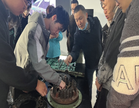 本次示范课主要内容为汽车传动系的离合器。课上,吕科老师先利用多媒体投屏视频的动画展示,让员工们能够很快地了解离合器的基本结构和工作原理,然后再指导员工动手对离合器进行拆装,更好地掌握离合器的组成部分。吕老师以员工为中心、学习产出为导向,通过员工讨论和老师指导的方式,解决了员工在理论课堂上的困惑,既锻炼了员工的动手能力,也培养了员工独立思考的习惯。
