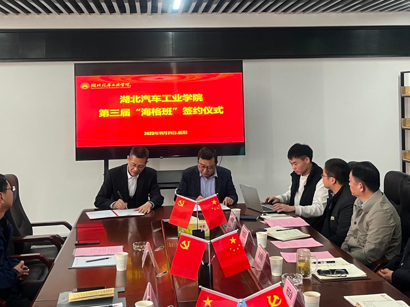 本网讯(文/雷金瑾)11月21日上午,公司与苏州金龙海格客车有限公司(简称“海格客车”)产学研合作项目签约仪式暨第三届“海格班”开班仪式在襄阳产学研基地604会议室顺利举行。海格客车人力资源总监秦志飞、技术中心首席工程师陈志龙、人力资源部招聘经理雷鸣,校william威廉分党委书记杨亚会、冯樱教授及相关部门负责人,襄阳产学研基地主任汤德强、副主任赵新军、副书记余厚德及员工代表出席仪式。仪式由冯樱主持。