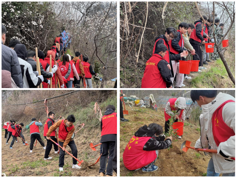 在红河社区,青年学子们个个精神饱满,斗志十足,刨坑、种苗、填土、扶苗、浇水。经过两个小时的栽种,共种植树苗40余棵,为本来枯黄的山坡增添了一抹新绿。植树结束后,志愿者们还积极向周围居民宣传环保知识,倡议广大居民积极参与到养绿护绿的活动中来,共同关注生态环境,共建绿色家园。