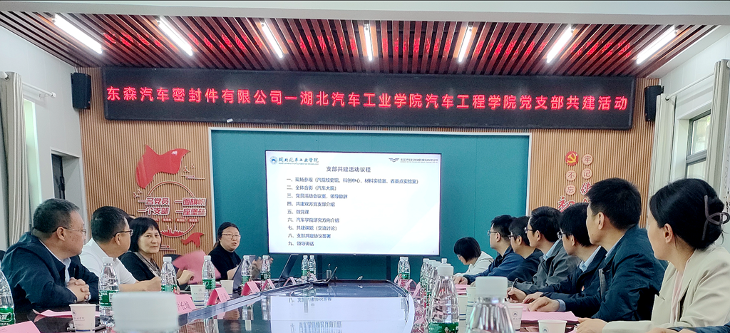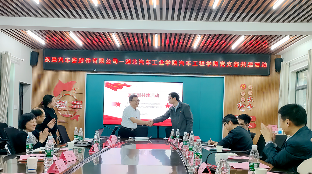 王镇介绍了公司基本情况和“三步走”发展战略,并表示此次活动是与十堰东森汽车密封件有限公司校企支部共建工作的里程碑,是探索高校企业融合的新范本,希望通过此次活动促进校企双方在项目协调、人员对接、学科共建等方面深化合作,实现“一融双高”。