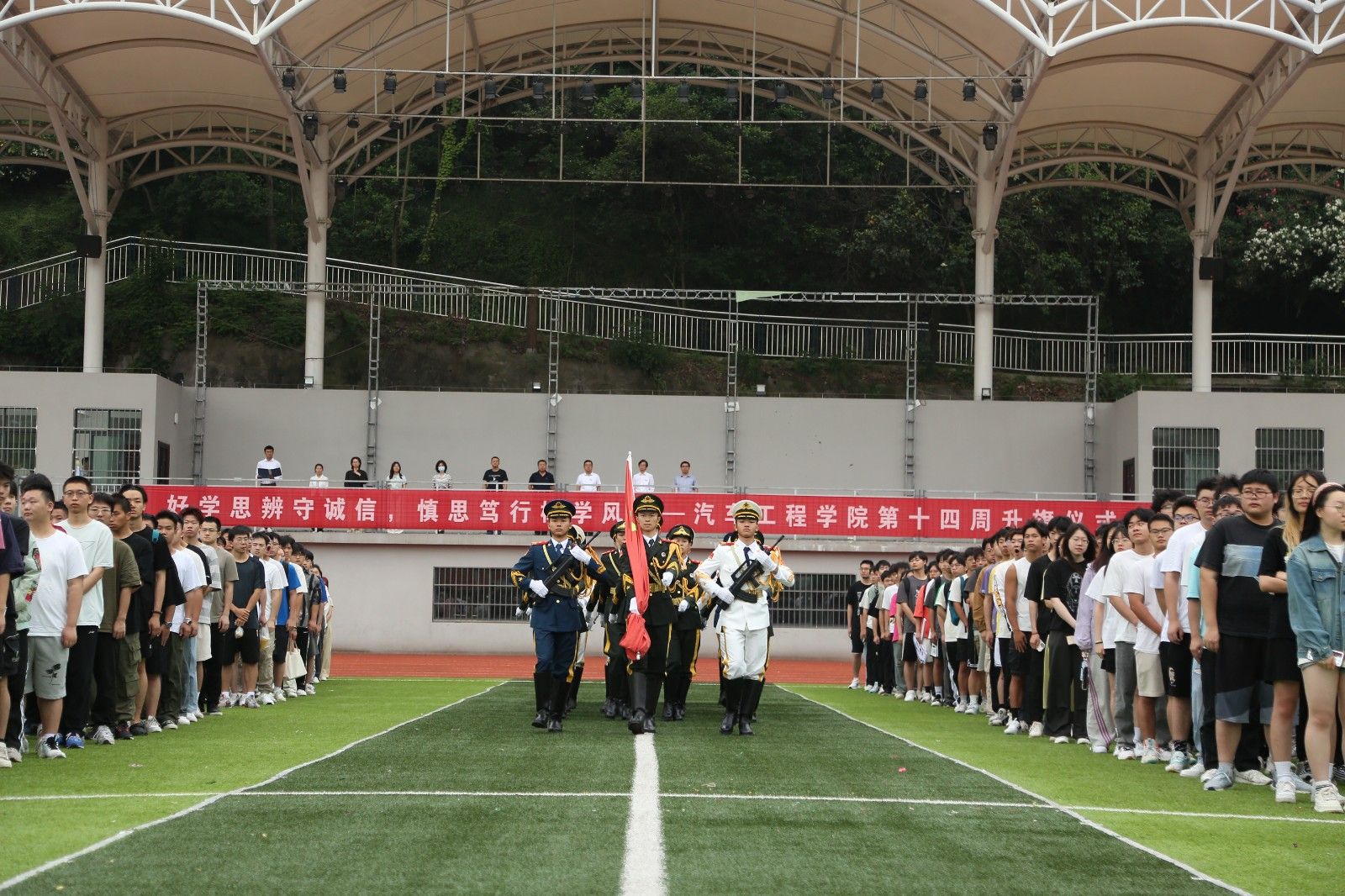 伴随着国歌声,五星红旗冉冉升起。车辆216班秦妍妍同学宣读“共建优良学风,不负韶华时光”倡议书,她在发言中倡议全院同学严格做到课堂不放松、手机不依赖、作业不侥幸、作息不凌乱,始终秉持“求是创新”校训,争当优良学风的创造者、践行者和维护者,以良好精神风貌彰显车院学子的风采。