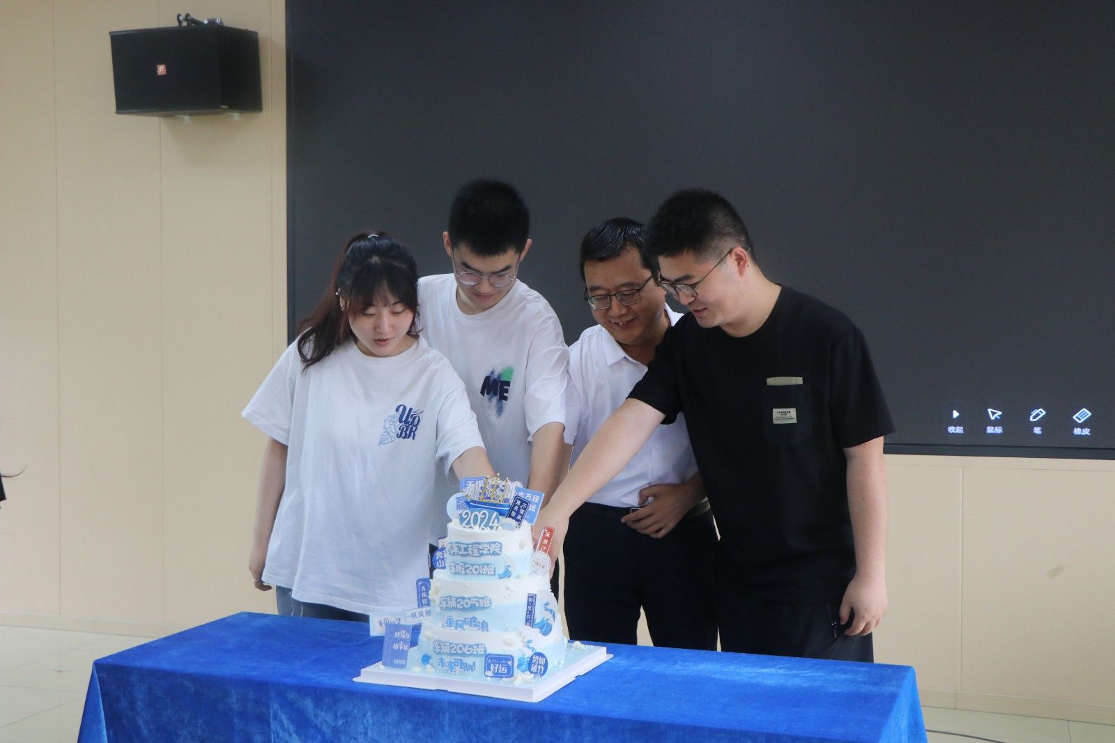 分党委书记杨亚会与毕业班班长共同切分祝福蛋糕,全体合唱歌曲《夜空中最亮的星》,杨亚会表示,公司将持续关注每一位毕业生的后续发展,希望同学们毕业后能常回母校看看,同时能继续关注、关心母校,努力为母校的发展添砖加瓦、献计献策。