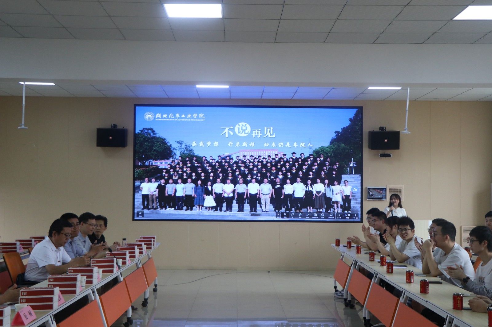 在座谈交流环节,毕业生代表分享了大学四年的学习心得和求职经历。公司领导、老师们认真听取了毕业生们的发言,对他们提出来的问题和建议给予了积极的回应,为毕业生们提供了宝贵的建议和指导。同时为即将远行的学子们送上了美好祝愿。学工办主任胡霄寒讲解毕业生离校相关要求,着重强调了毕业期间的安全问题。(审稿 周彬)
