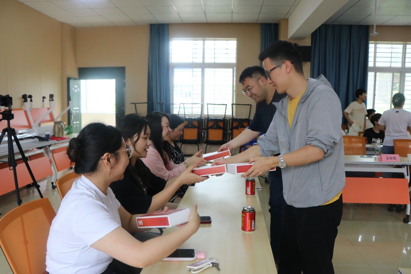 分党委副书记周彬为2024届员工联络员颁发聘书,在场领导和教师们为员工们共同送上毕业礼物,表达了对2024届毕业生顺利毕业的祝贺。