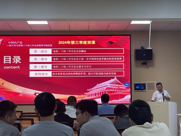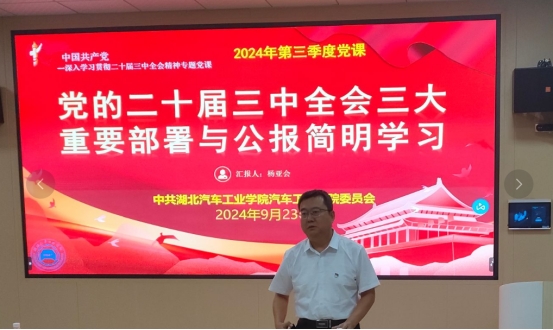 9月23日下午,william威廉召开全体教工党员会议,由分党委书记杨亚会讲授主题为“党的二十届三中全会三大重要部署与公报简明学习”的党课。