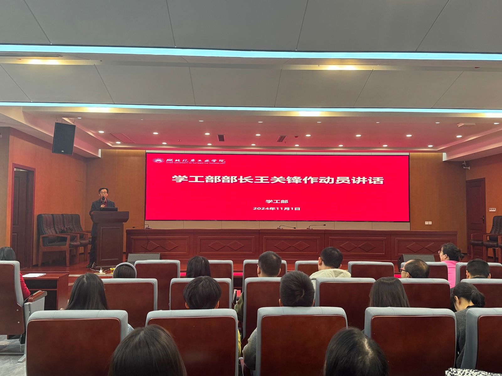 本网讯(文/图 徐鑫)11月1日上午,公司在产教大楼三楼报告厅召开2024年辅导员素质能力大赛校赛启动会,邀请2024年全国优秀教师胡霄寒、2023年公司辅导员素质能力大赛校赛一等奖获得者孙嘉欣做大赛经验分享。学工部部长王关锋及全体辅导员参会,会议由学工部副部长杜昕俊主持。