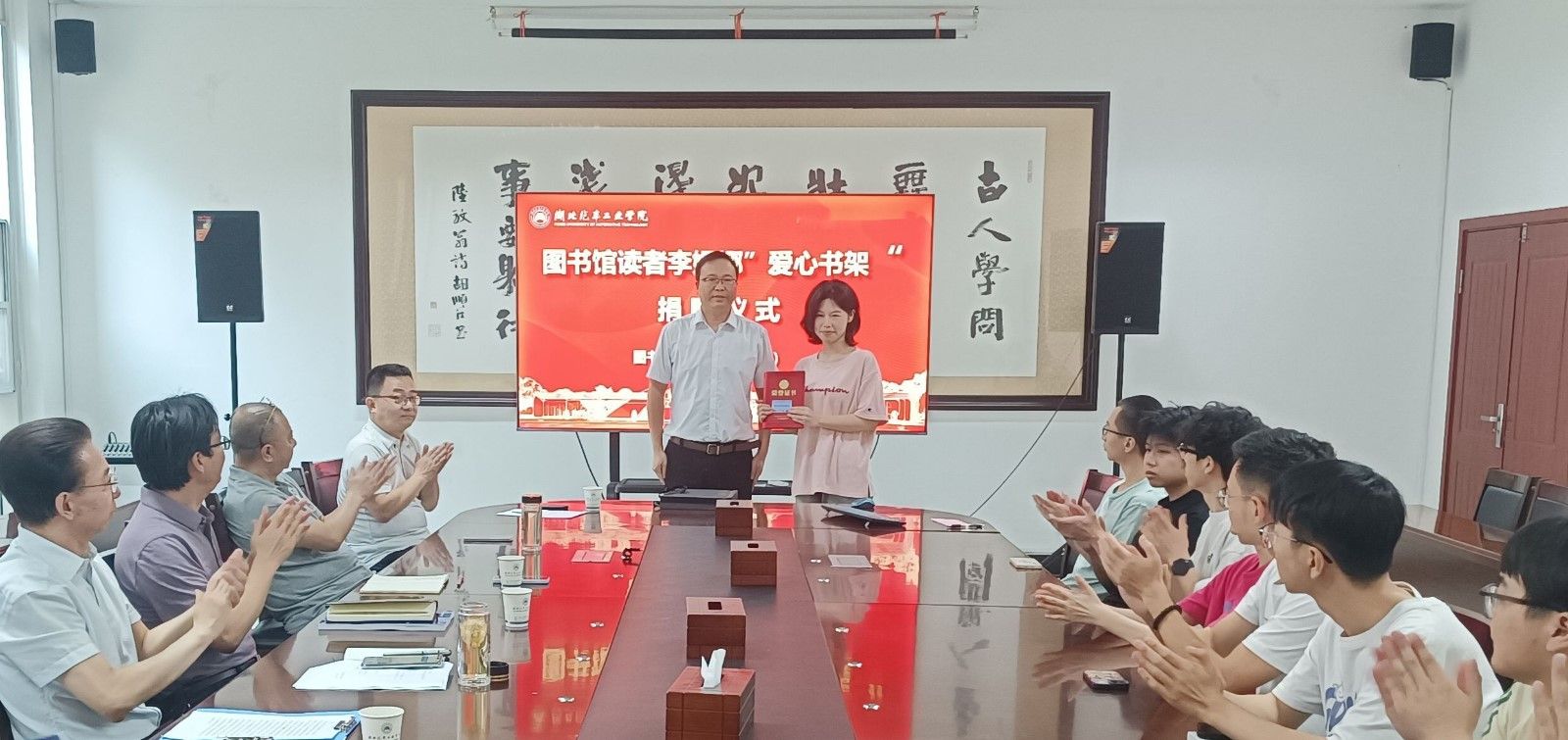 周彬表示,李姗娜同学用自己文学创作的稿费捐赠的这组书架,将带动更多学子在知识的海洋里破浪前行。