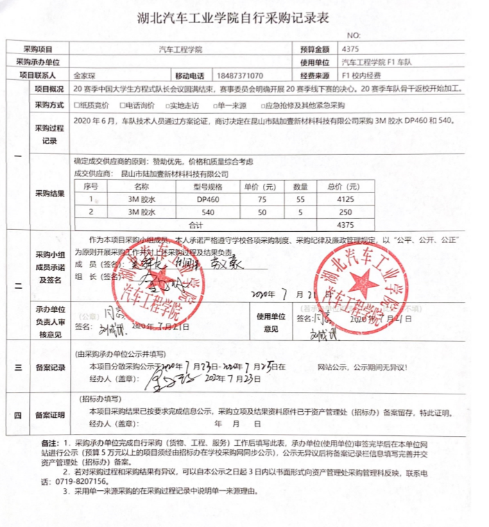 自行采购记录表
