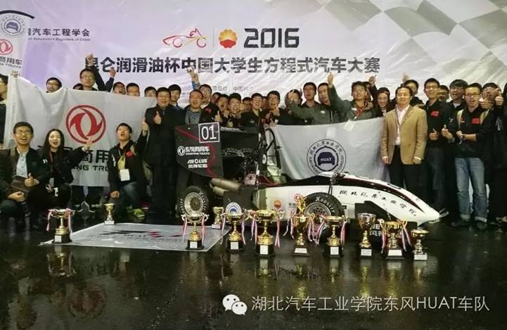 201510月:参加第6届中国老员工方程式汽车大赛,东风HUAT车队油车以总成绩880.12分获得全国总冠军,单项奖包括燃油组第一名、易车新闻传播大奖、勇哥缘梦造梦FSC大奖、成本分析第三名、直线加速第二名、高速避障第三名、耐久赛第二。