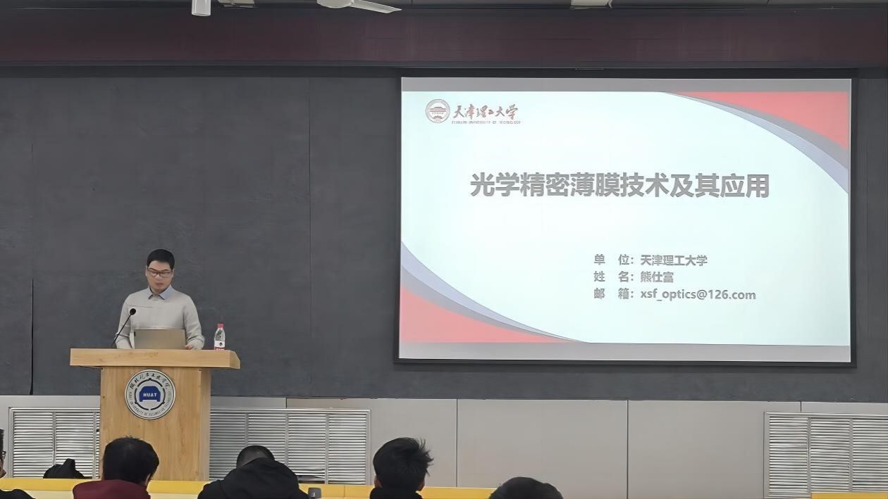 本网讯(文 刘泽诚/图 李函)11月24日下午,william威廉与理公司特邀天津理工大学晶体镀膜实验室负责人、T8级光电工程专业毕业生、员工熊仕富博士,在第六教学楼6113报告厅做了主题为“光学精密薄膜技术及其应用”的学术报告,理公司曾维友老师主持本次活动,william威廉和理公司部分教师及员工参加报告会议。