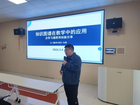 随后,周骁副教授以数学分析为例,深入剖析了知识图谱在教学中的实际应用。他详细阐述了如何设置知识图谱、建立学科课程体系,以及各个课程之间的关联。通过实例展示,与会教师们对知识图谱在教学中的应用有了更直观的认识。