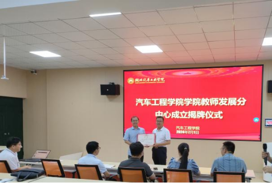 董焱章副经理宣读了《关于成立汽车工程公司教师发展分中心的通知》(车院院发〔2024〕6号),随后由胡明茂经理与郭一鸣教授共同为公司教师发展分中心进行揭牌仪式,杨亚会书记向公司教师发展分中心特聘顾问郭一鸣教授颁发聘书。
